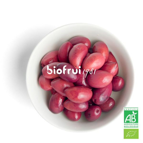 L'olive de Kalamata, considérée par les spécialistes comme la reine des olives, est ici préparée selon la recette traditionnelle qui met en valeur ses arômes riches et fruités.