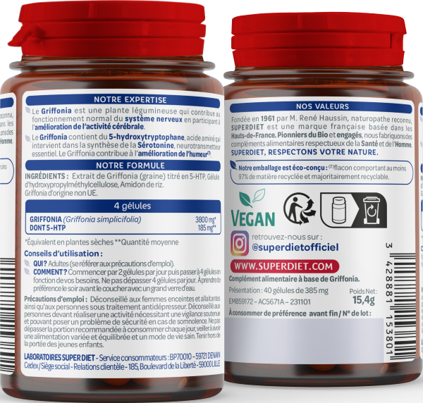 Le Griffonia contribue par conséquent à l'amélioration de l'humeur, tout en contribuant au fonctionnement normal du système nerveux et à amélioration de l'activité cérébrale.