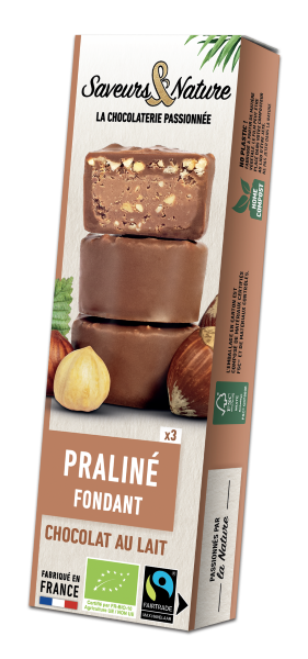 Praliné gourmand enrobé de chocolat au lait 40% cacao.