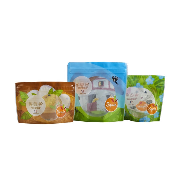 Les sacs à goûter réutilisables et multi-usages Squiz sont fabriqués en France, en Pays de la Loire, permettent de stocker et emporter gâteaux, sandwichs, fruits secs et bien plus…. Réutilisables, ces sacs multi-usages sont une alternative plus écologique aux emballages individuels et contribuent à réduire les déchets. Destinés aux petits comme aux grands, ils seront un allié de poids pour éduquer les enfants au zéro-déchet et leur apprendre à réutiliser plutôt que jeter.